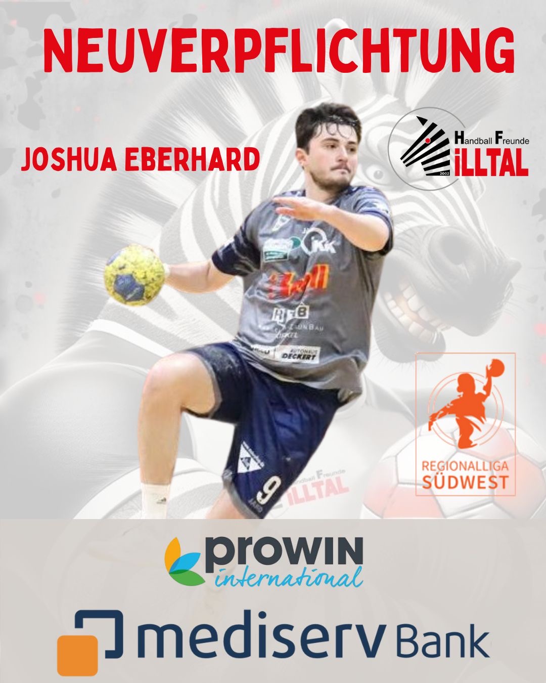 Joshua ist Jahrgang 2002, Rechtshänder und gelernter Rückraumakteur. Dort ist er flexibel einsetzbar. In seiner Jugend spielte Eberhard neben Saarlouis und Zweibrücken sehr erfolgreich bei den SC Magdeburg Youngsters in der Jugendbundesliga inkl. des Turniers zur Deutschen Meisterschaft. In den Jugendauswahlteams des Saarlandes war er ebenso beheimatet wie in der Jugendauswahl von Sachsen-Anhalt, mit der er auch seinen bisher größten Erfolg, die Vize-Meister der deutschen Landesverbände, in seine Vita notieren darf. Als Aktivenspieler sammelte er bereits Erfahrung in der 3. Liga (SC Magdeburg Youngsters) und die letzten Stationen waren Zweibrücken und St. Ingbert, wo er in der Regionalliga Südwest auf der Platte stand. Joshua und die HF Illtal binden sich für zunächst zwei Jahre und wünschen sich gegenseitig eine langjährige und erfolgreiche Zusammenarbeit. Wir sagen herzliche Willkommen im Zebrastall – Joshua Eberhard.